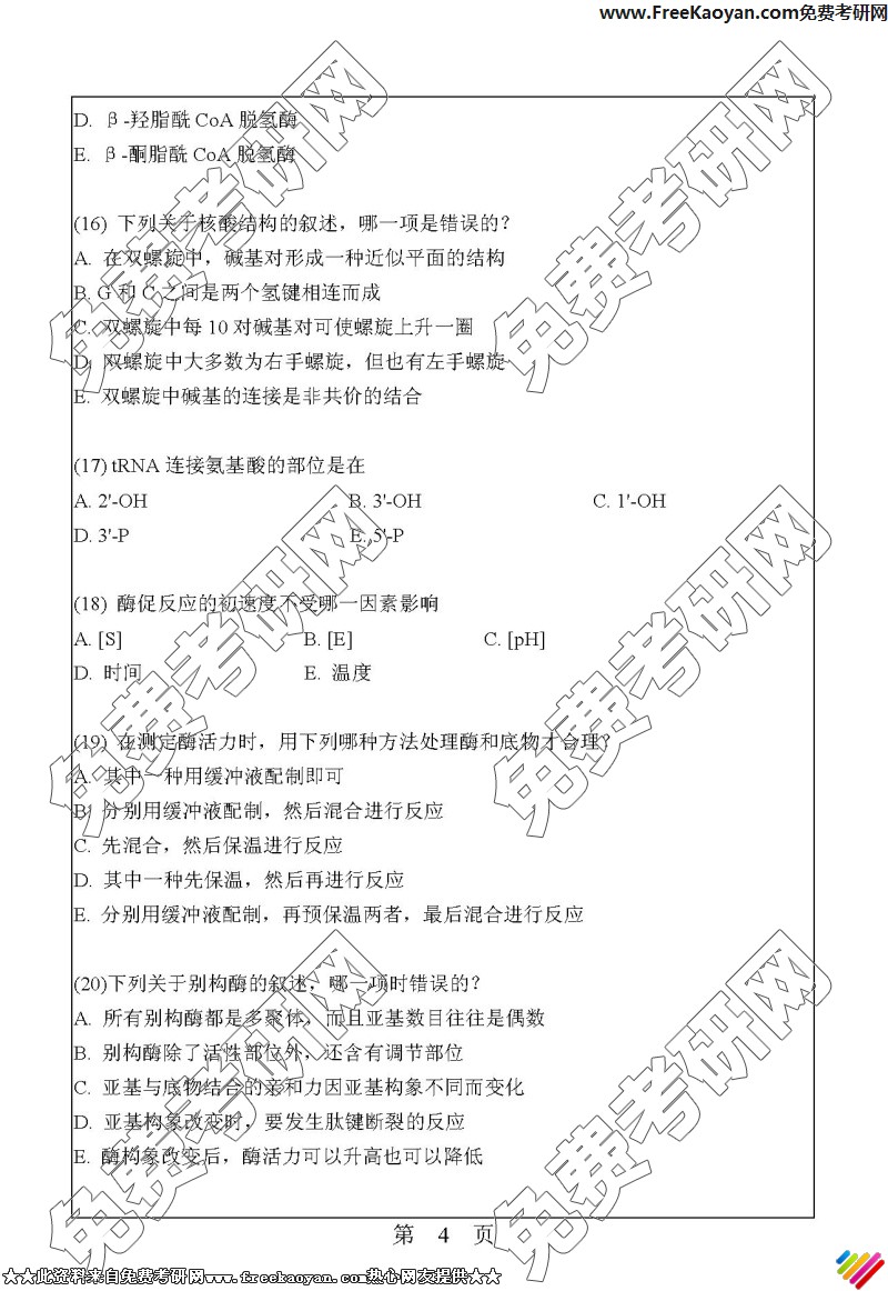 华南理工大学2006年考研真题-生物化学与分子生物学(4)