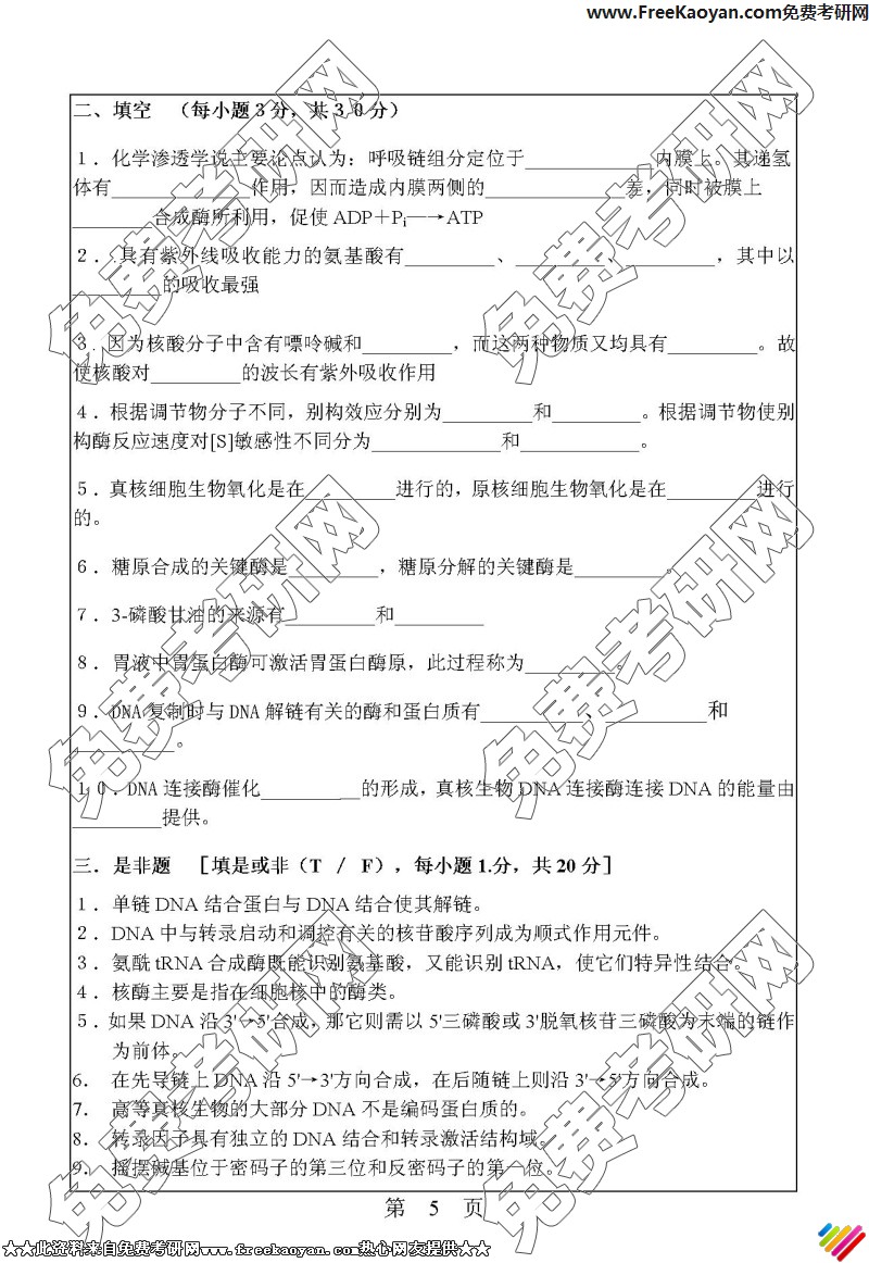 华南理工大学2006年考研真题-生物化学与分子生物学(5)