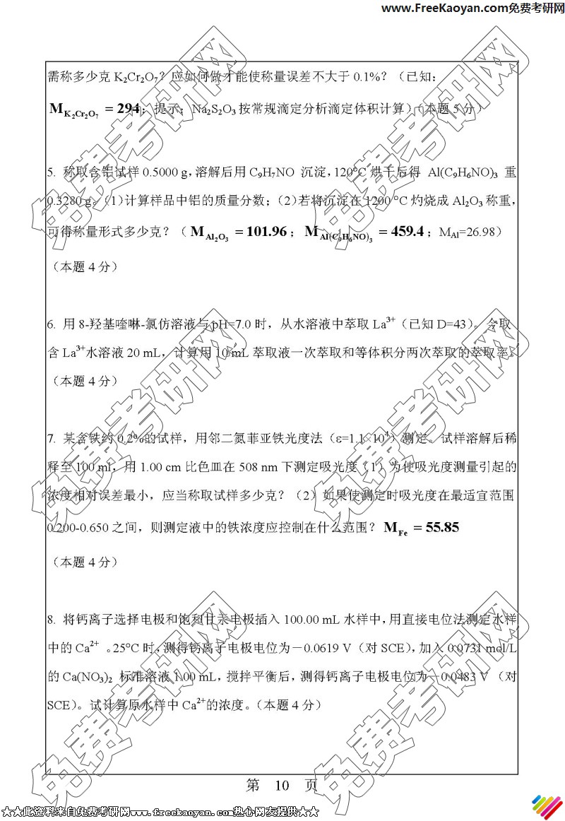 专业课考研经验 本站小编 FreeKaoyan 2018-01-22华南理工大学2006年考研真题-无机化学