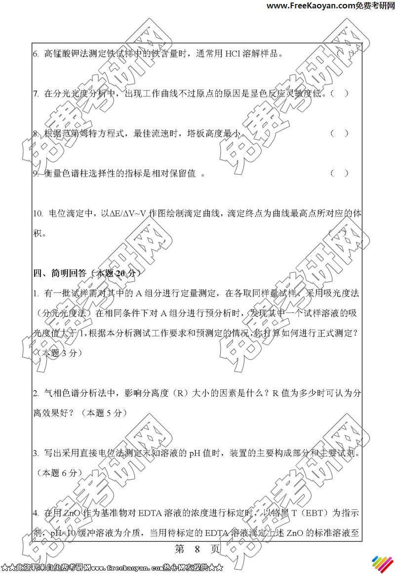 华南理工大学2006年考研真题-分析化学(8)