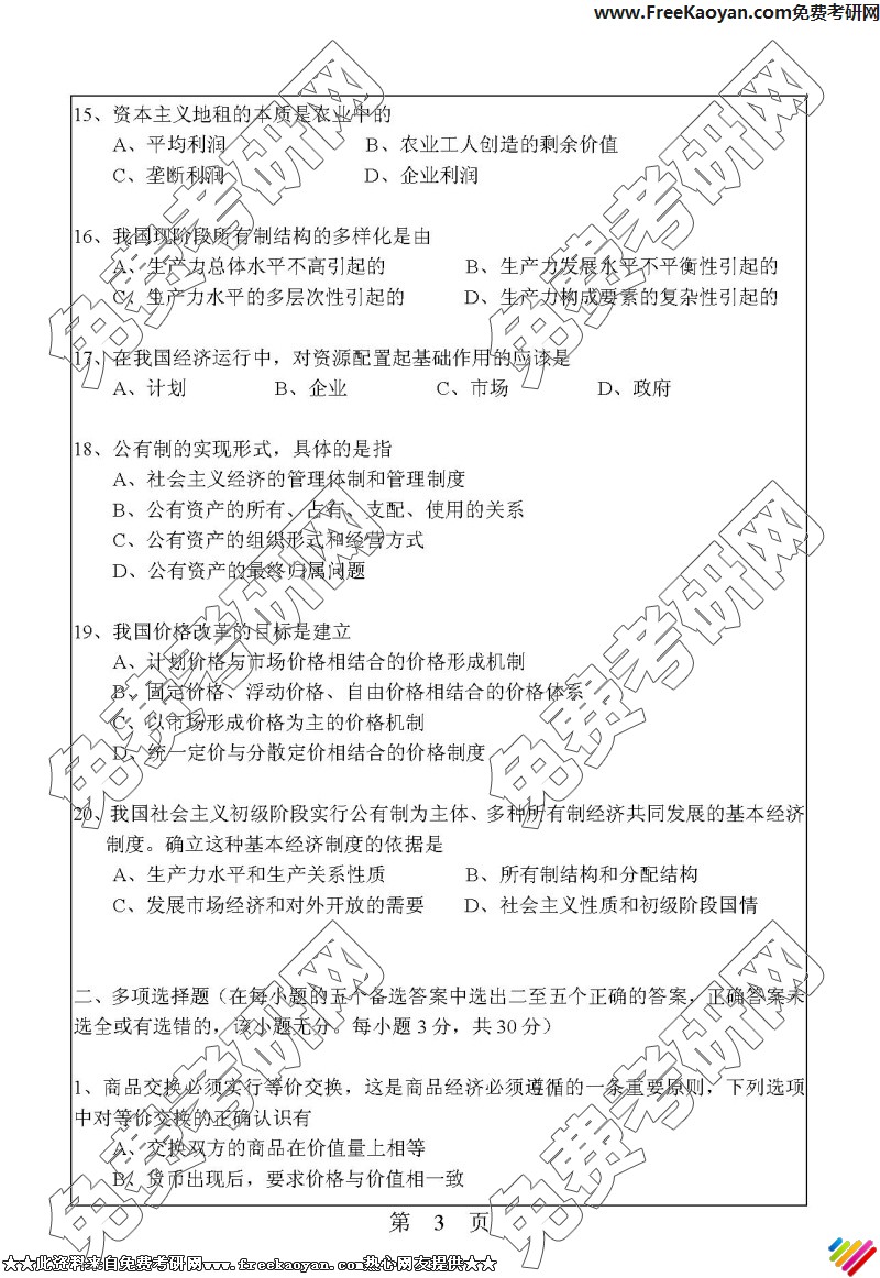 华南理工大学2006年考研真题-马克思主义政治经济学原理(3)