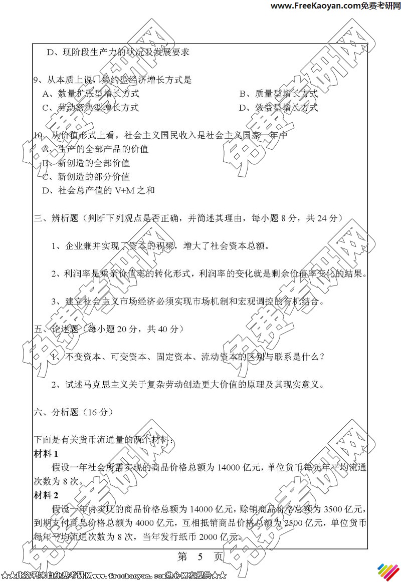华南理工大学2006年考研真题-马克思主义政治经济学原理(5)