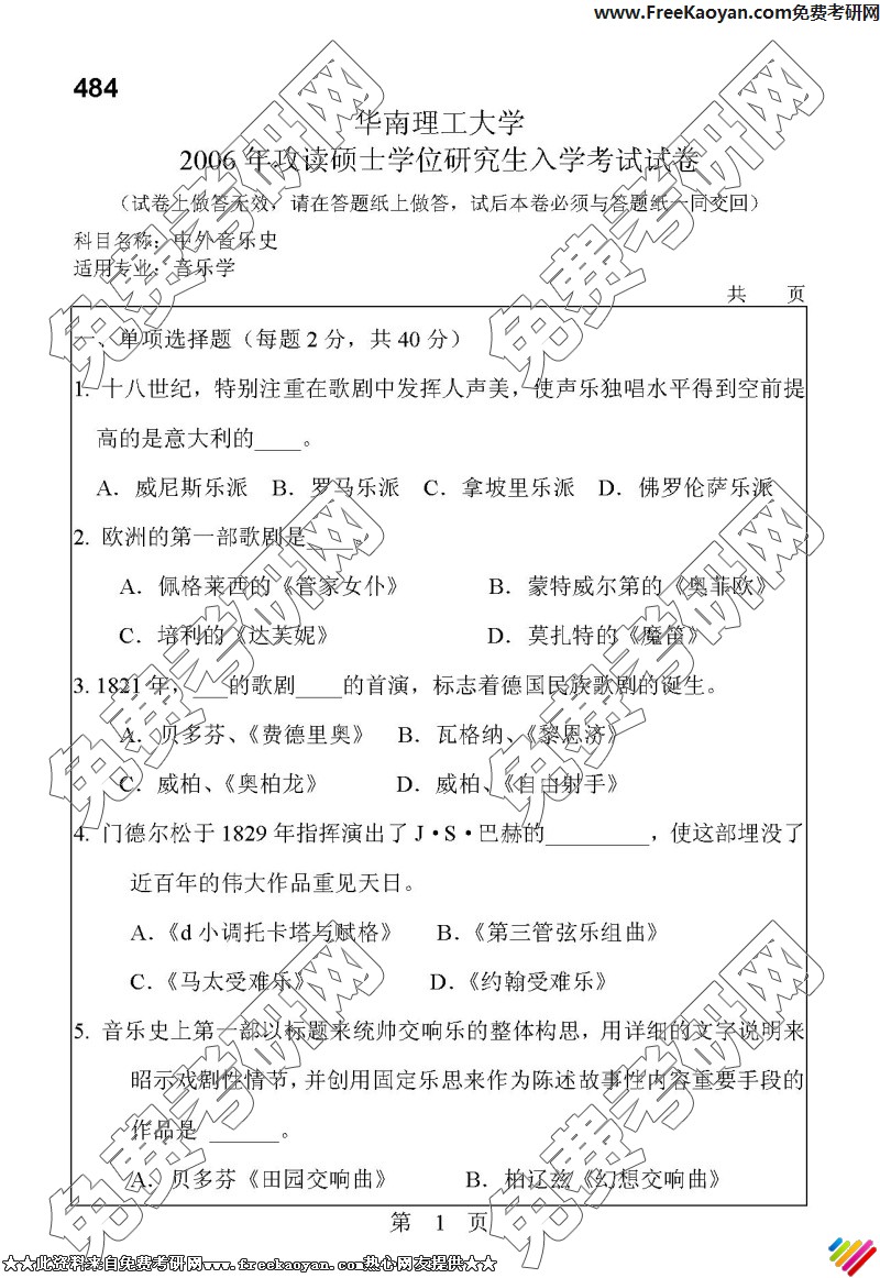 相关话题/考研真题 华南理工大学 音乐史 中外