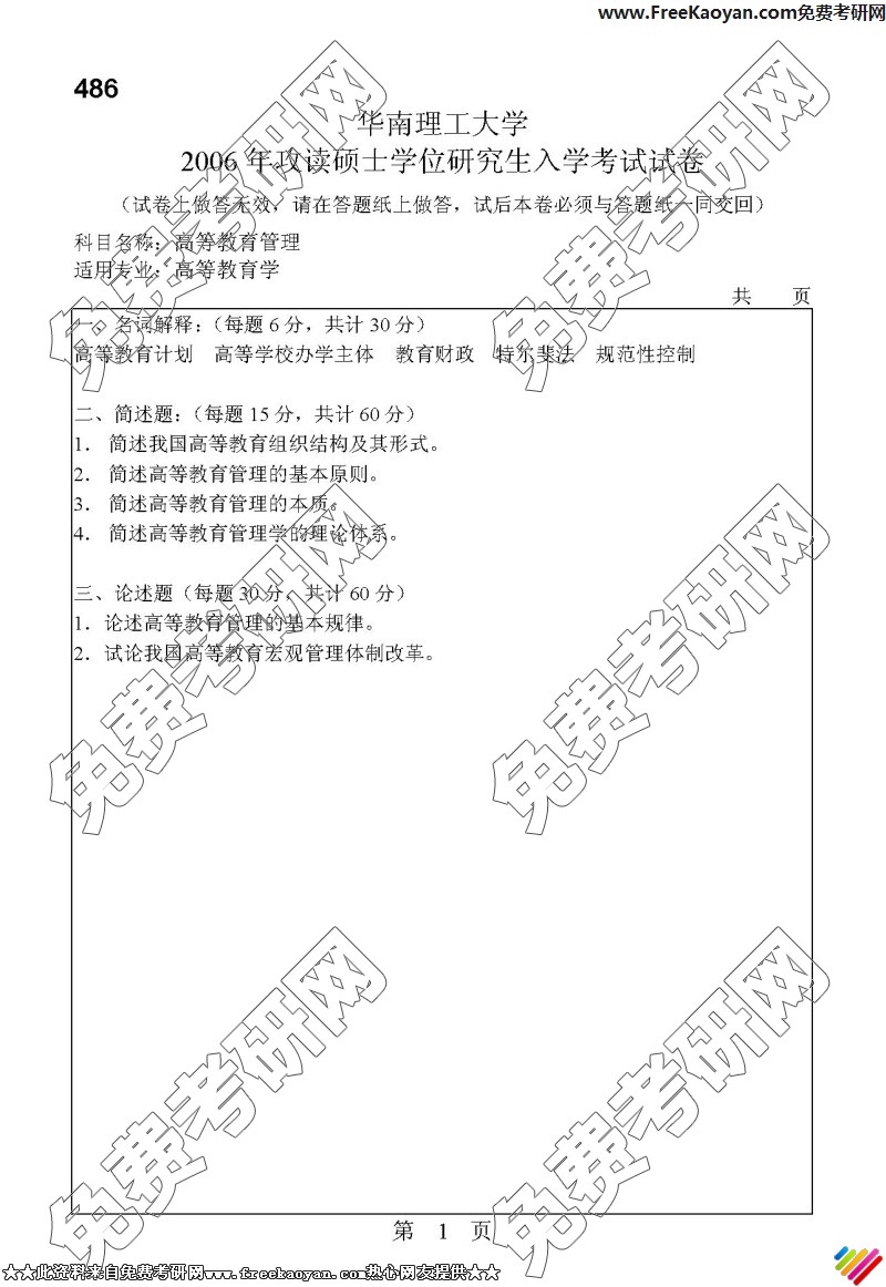 专业课考研经验 本站小编 FreeKaoyan 2018-01-22华南理工大学2006年考研真题-管理学