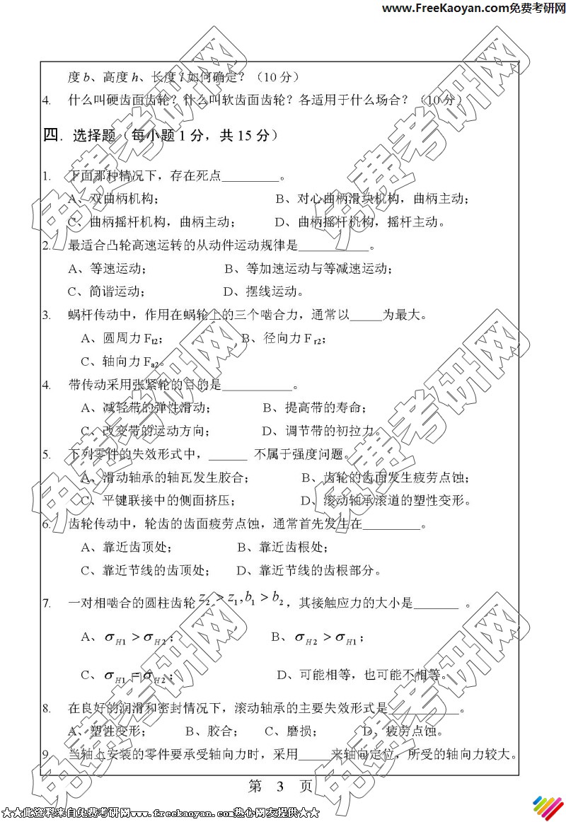 华南理工大学2006年考研真题-机械设计基础(3)