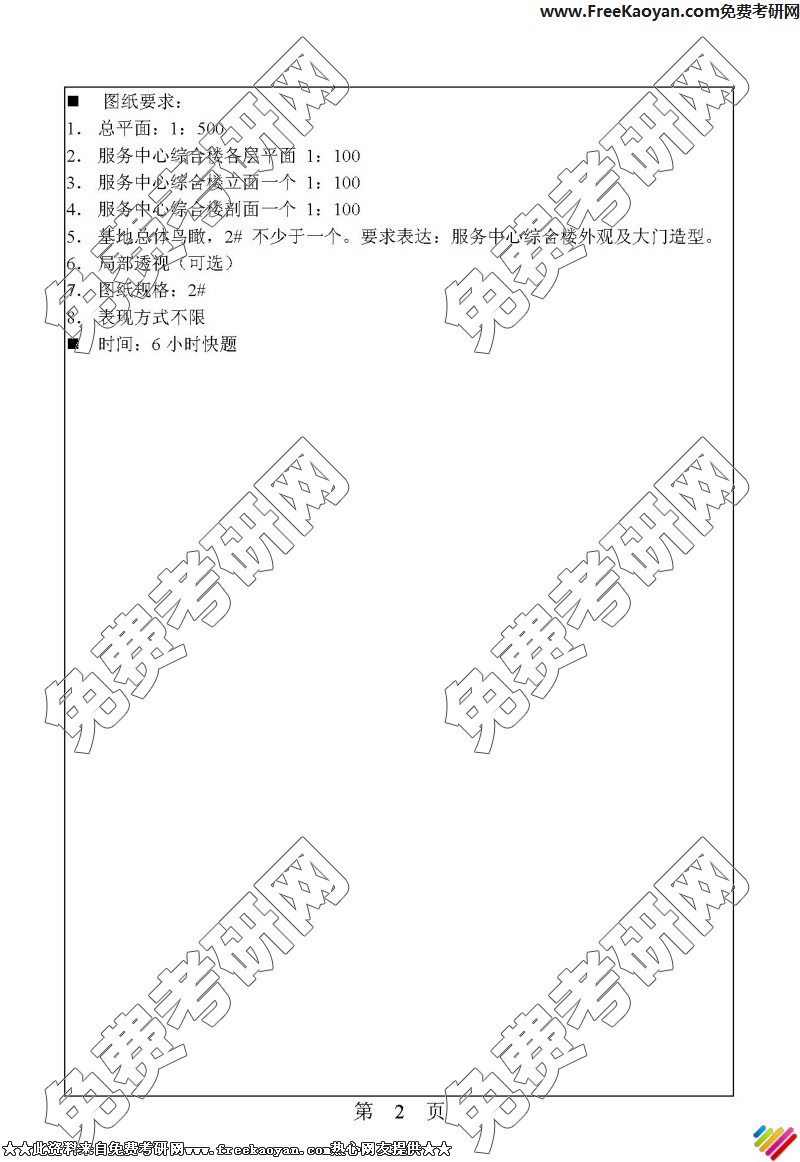 专业课考研经验 本站小编 FreeKaoyan 2018-01-22华南理工大学2006年考研真题-建筑设计(做图)
