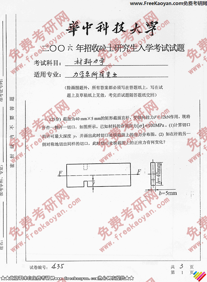 相关话题/考研真题 华中科技大学 力学 材料力学