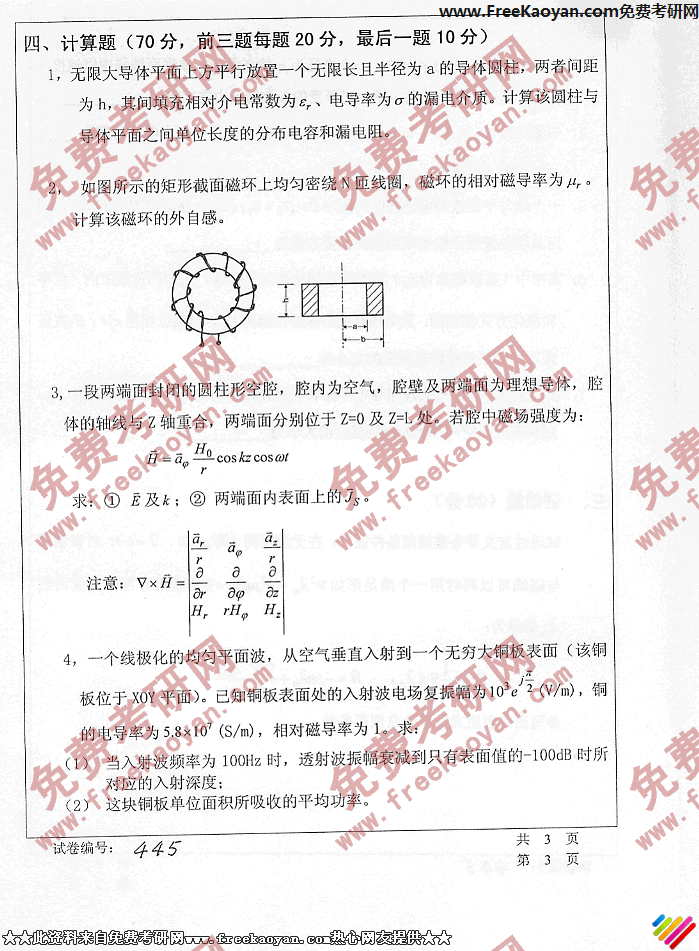 华中科技大学2006年考研真题-电磁场与电磁波(3)