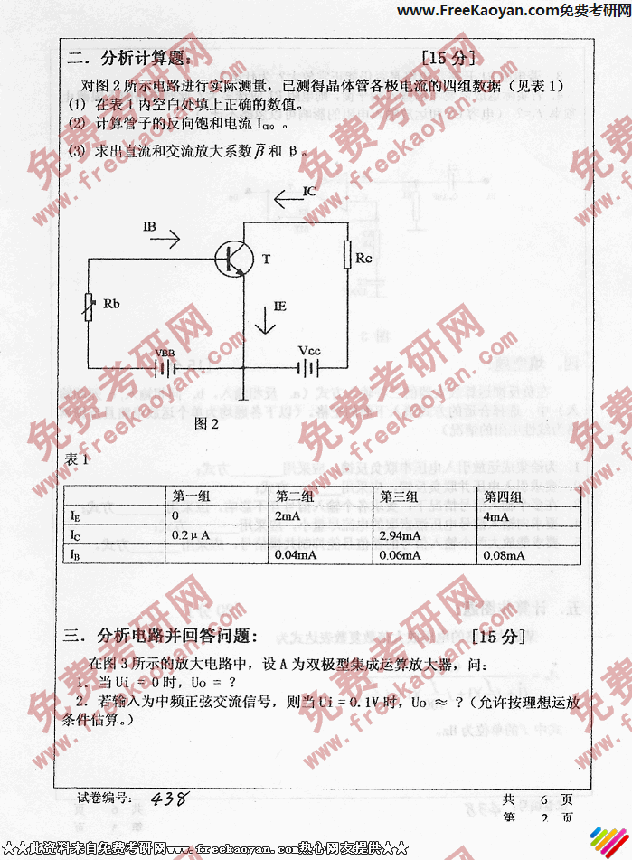 华中科技大学2006年考研真题-电子技术基础438(2)