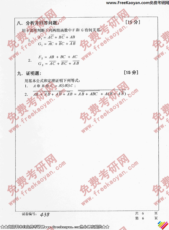 华中科技大学2006年考研真题-电子技术基础438(6)