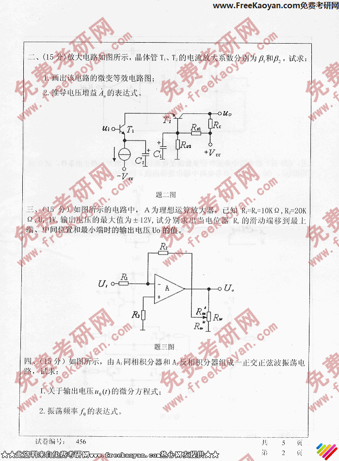 专业课考研经验 本站小编 FreeKaoyan 2018-01-22华中科技大学2006年考研真题-电子技术基础