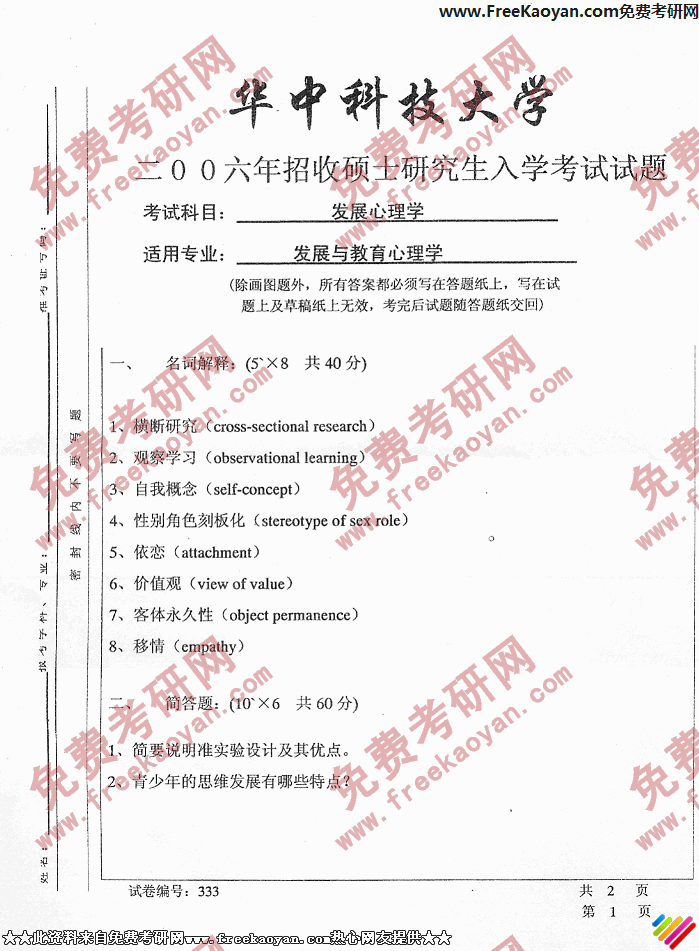 专业课考研经验 本站小编 FreeKaoyan 2018-01-22华中科技大学2006年考研真题-传播理论与研究方法