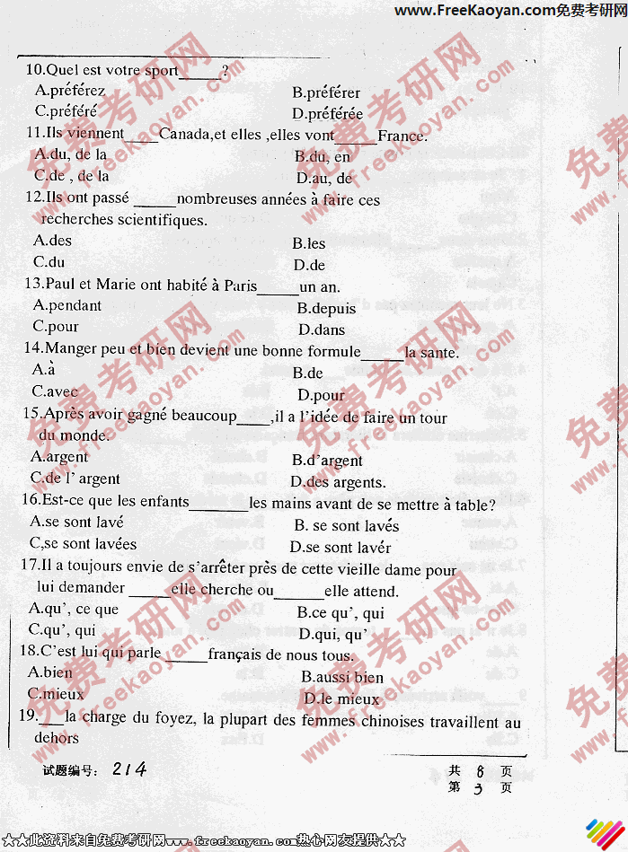相关话题/考研真题 华中科技大学 外国语言学 法语