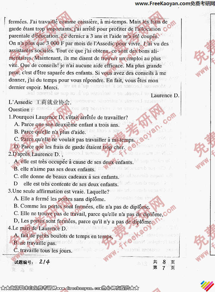 华中科技大学2006年考研真题-法语(外国语言学)(7)