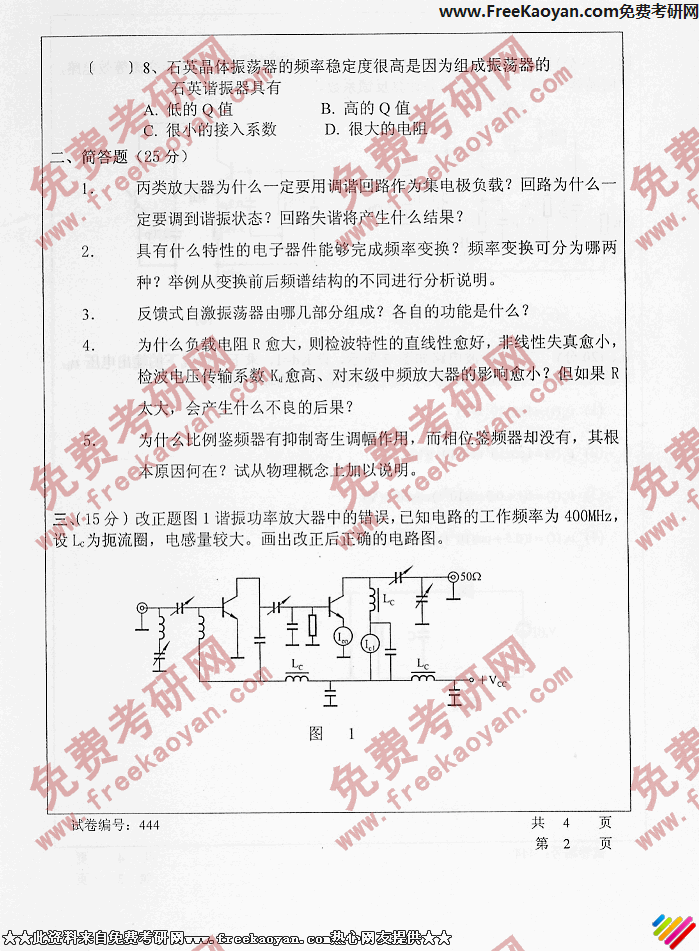 专业课考研经验 本站小编 FreeKaoyan 2018-01-22华中科技大学2006年考研真题-电子技术基础456