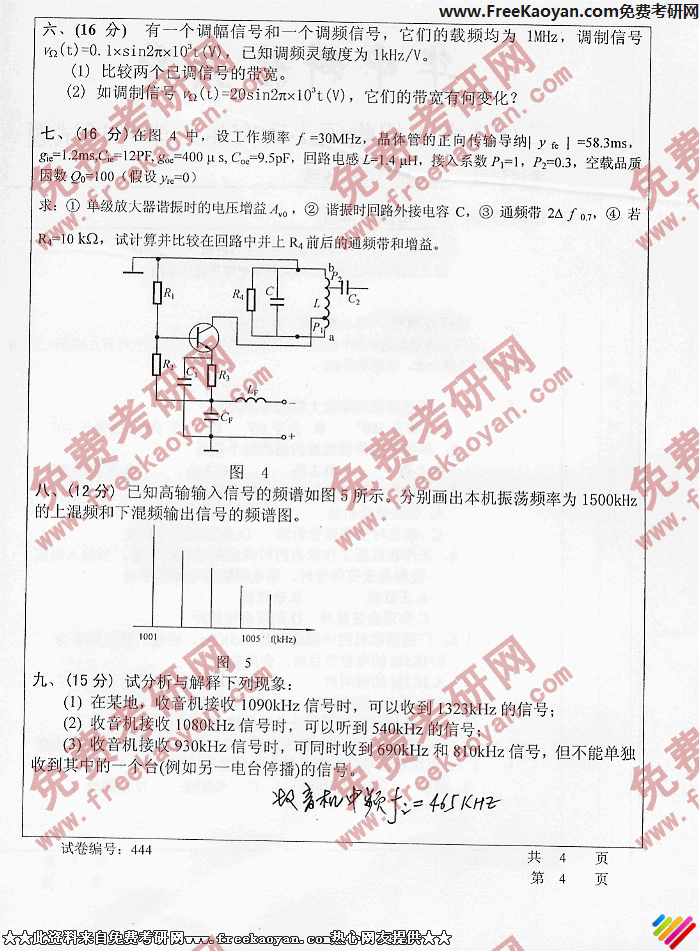 专业课考研经验 本站小编 FreeKaoyan 2018-01-22华中科技大学2006年考研真题-电子技术基础456