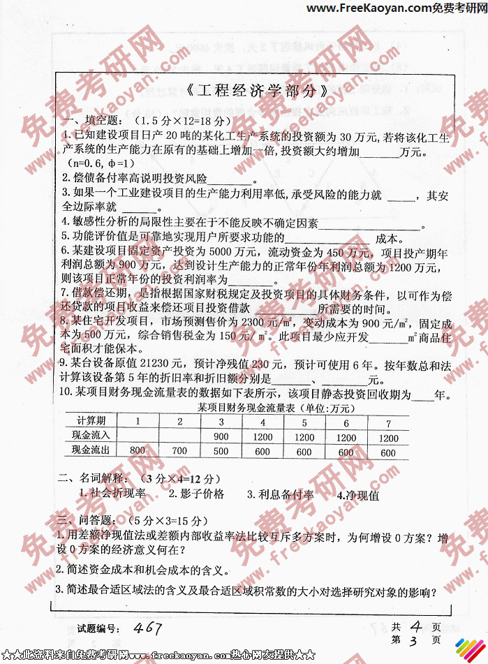 华中科技大学2006年考研真题-工程经济及项目管理(3)
