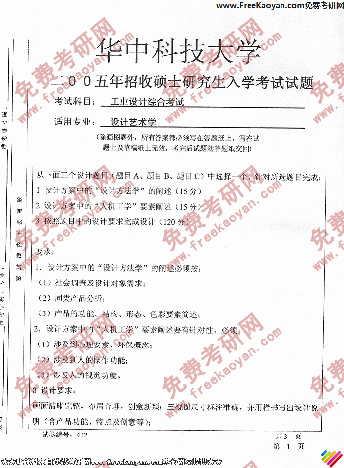 相关话题/考研真题 华中科技大学 综合考试 工业设计