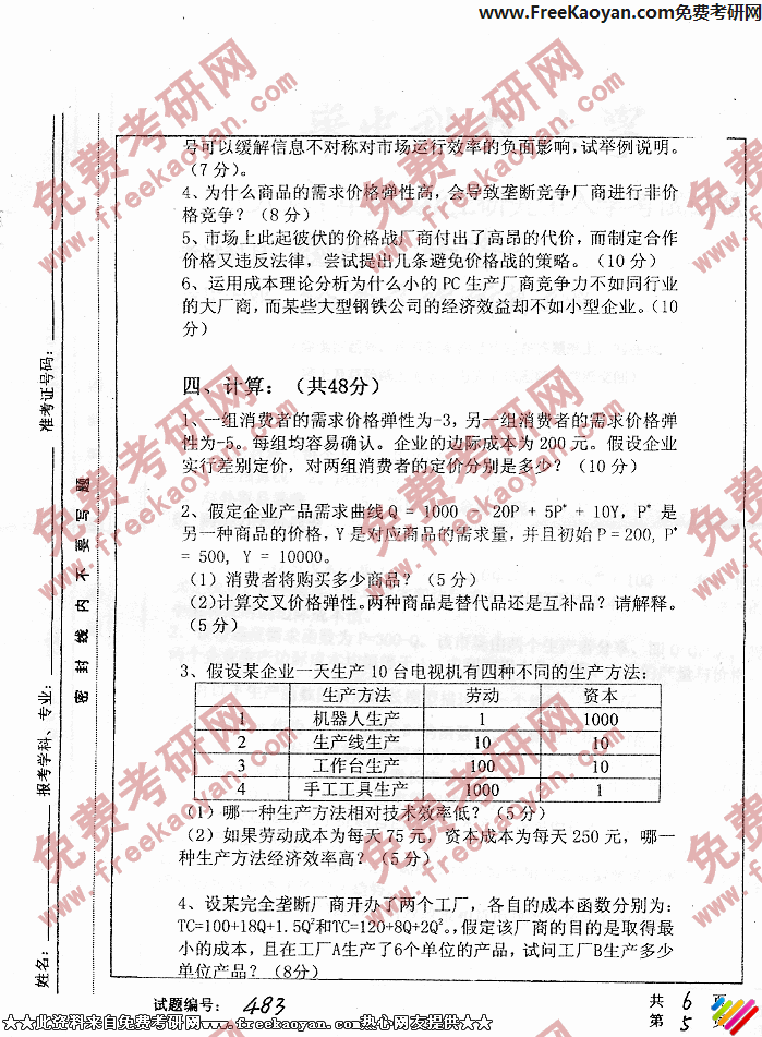 华中科技大学2006年考研真题-管理经济学(5)