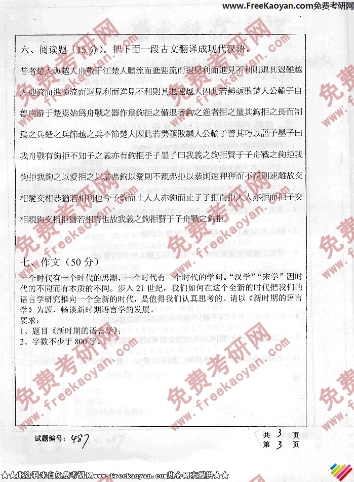 华中科技大学2006年考研真题-汉语言文字及写作(3)