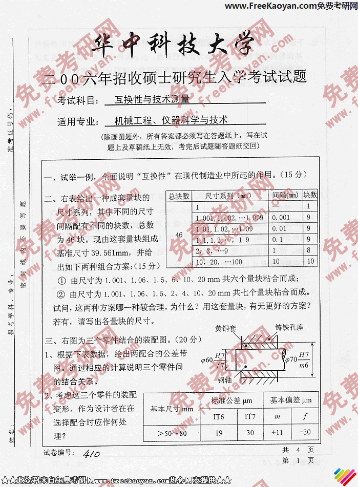 相关话题/华中科技大学 考研真题 测量 技术 互换性