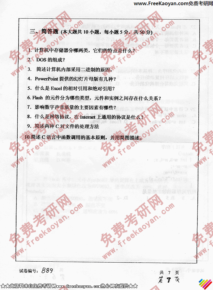 华中科技大学2006年考研真题-计算机应用基础(7)