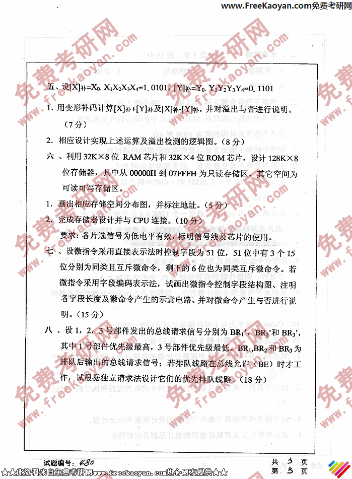 专业课考研经验 本站小编 FreeKaoyan 2018-01-22华中科技大学2006年考研真题-计算机原理及应用