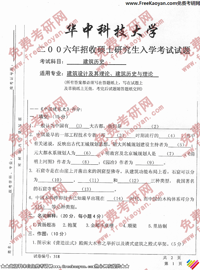 相关话题/考研真题 华中科技大学 历史 建筑