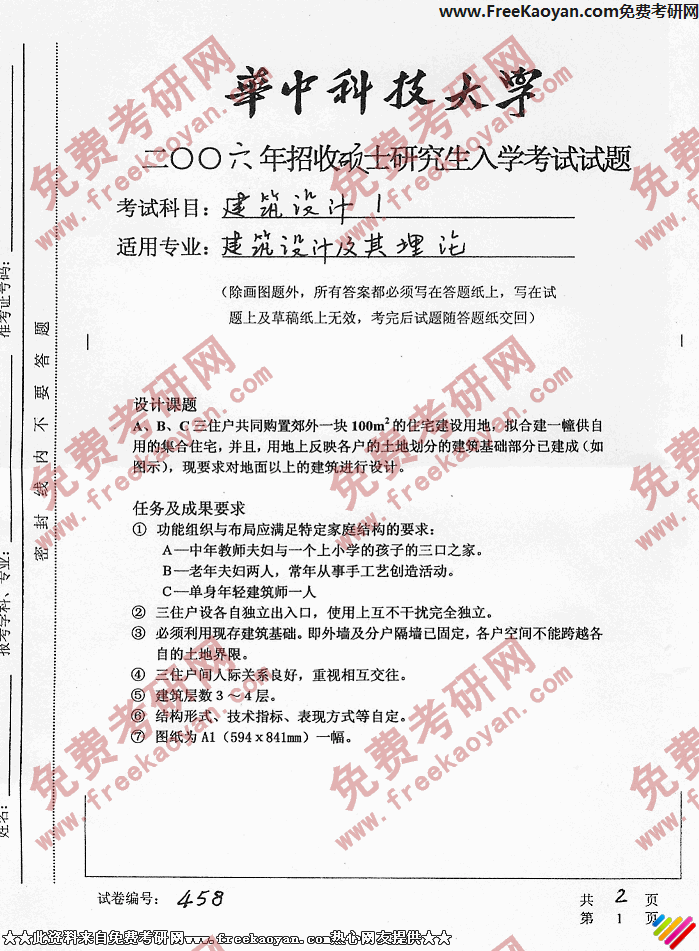 专业课考研经验 本站小编 FreeKaoyan 2018-01-22华中科技大学2006年考研真题-建筑构造