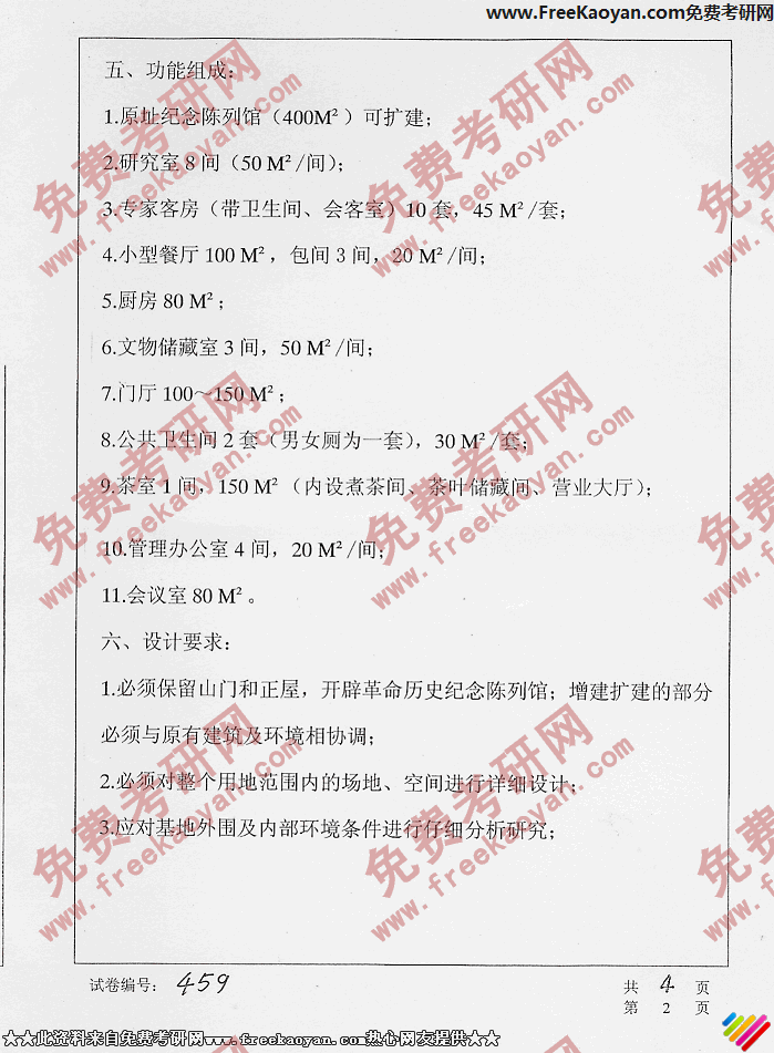 专业课考研经验 本站小编 FreeKaoyan 2018-01-22华中科技大学2006年考研真题-建筑设计1