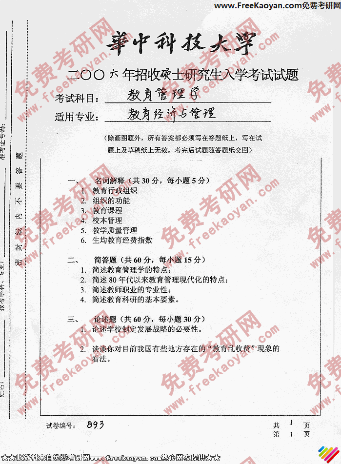 相关话题/考研真题 华中科技大学 管理学 教育