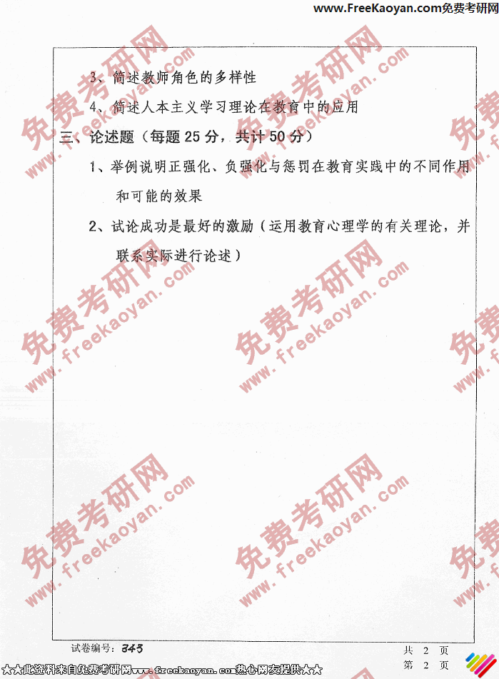 专业课考研经验 本站小编 FreeKaoyan 2018-01-22华中科技大学2006年考研真题-教育管理学
