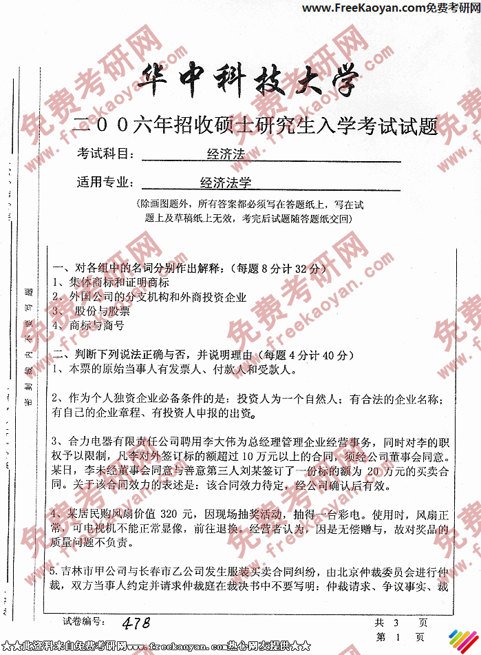 专业课考研经验 本站小编 FreeKaoyan 2018-01-22华中科技大学2006年考研真题-教育经济学
