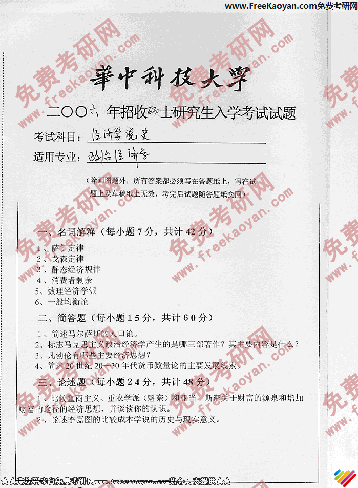 专业课考研经验 本站小编 FreeKaoyan 2018-01-22华中科技大学2006年考研真题-教育经济学