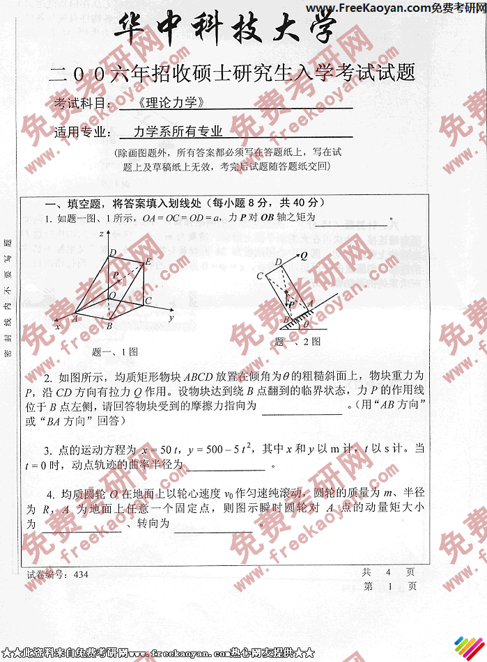 专业课考研经验 本站小编 FreeKaoyan 2018-01-22华中科技大学2006年考研真题-结构力学