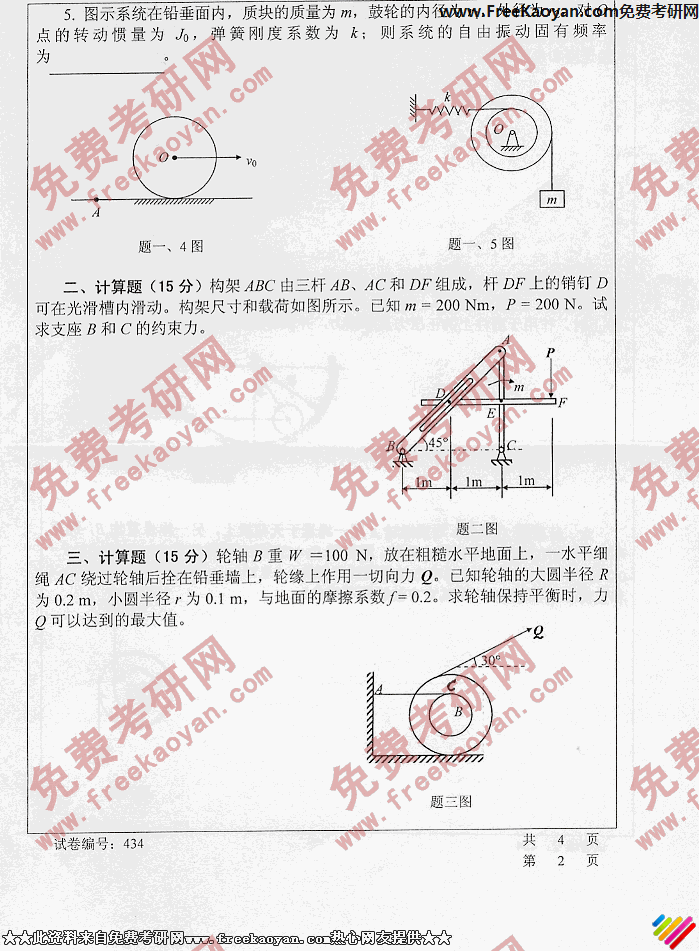 专业课考研经验 本站小编 FreeKaoyan 2018-01-22华中科技大学2006年考研真题-结构力学