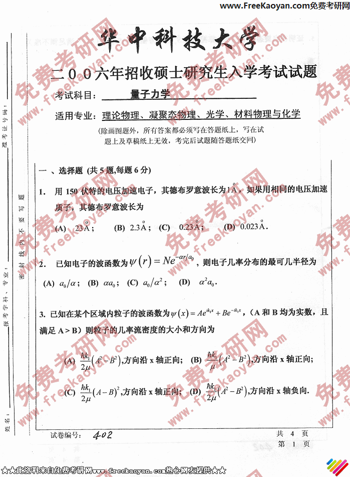 专业课考研经验 本站小编 FreeKaoyan 2018-01-22华中科技大学2006年考研真题-离散数学