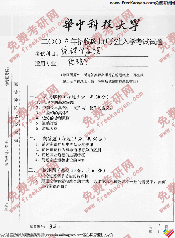相关话题/考研真题 华中科技大学 伦理学 原理