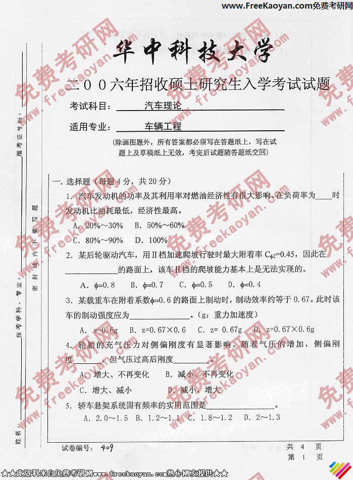 专业课考研经验 本站小编 FreeKaoyan 2018-01-22华中科技大学2006年考研真题-理论力学