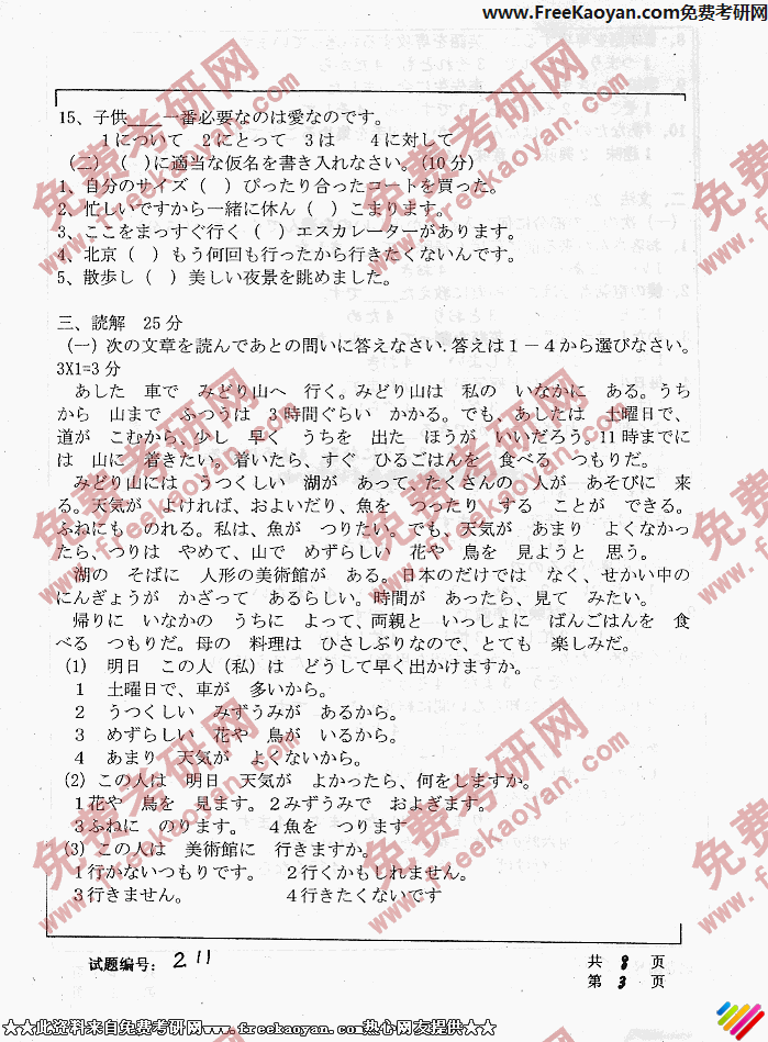 华中科技大学2006年考研真题-日语(外国语言学)(3)