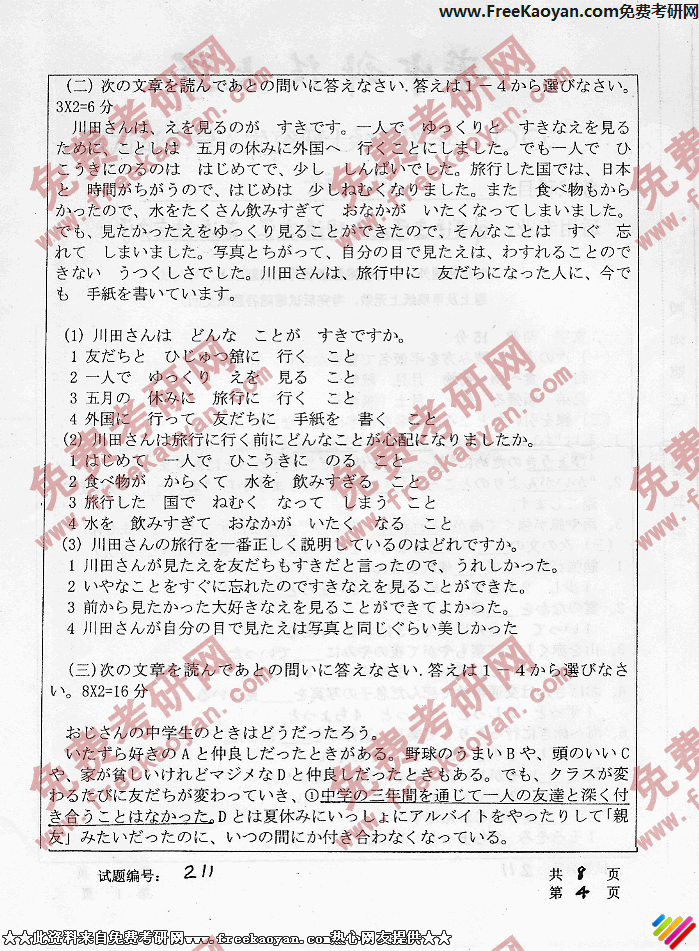 专业课考研经验 本站小编 FreeKaoyan 2018-01-22华中科技大学2006年考研真题-日汉互译与日语写作