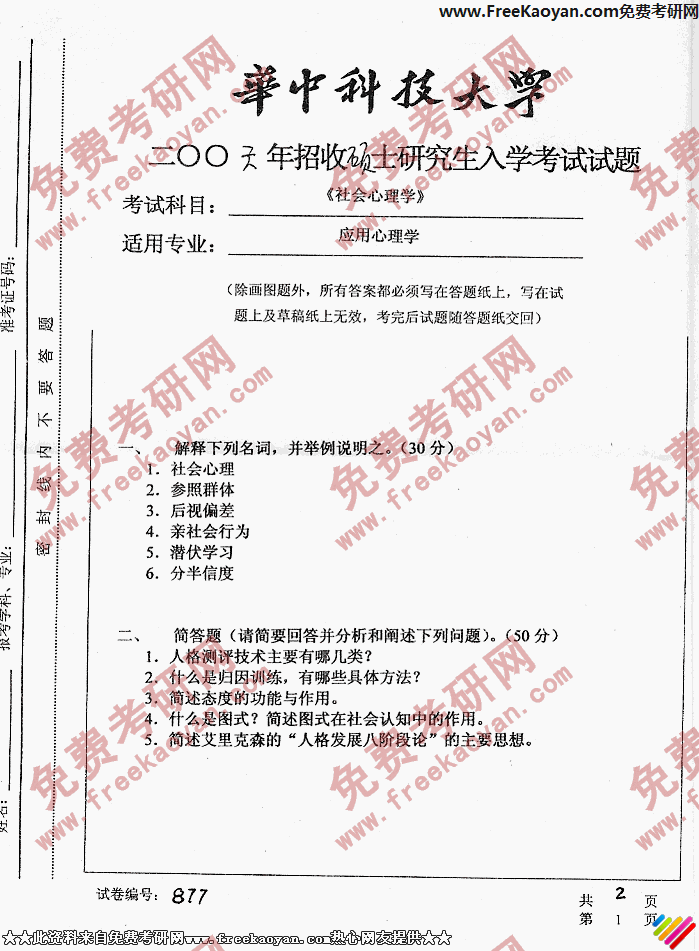 相关话题/考研真题 华中科技大学 社会心理学