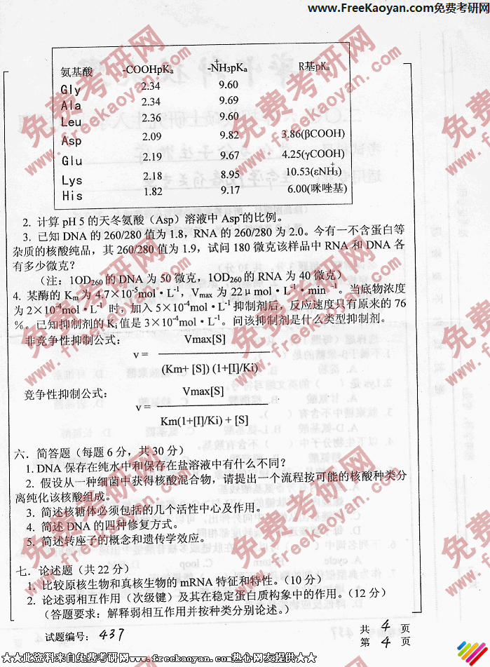 华中科技大学2006年考研真题-生化与分子生物学(4)