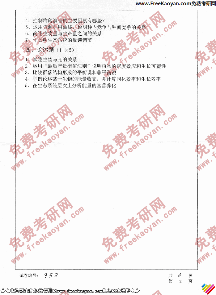 专业课考研经验 本站小编 FreeKaoyan 2018-01-22华中科技大学2006年考研真题-生态学