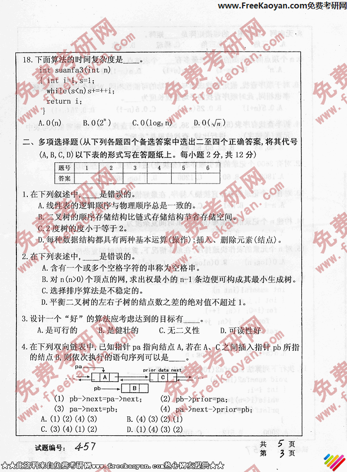 专业课考研经验 本站小编 FreeKaoyan 2018-01-22华中科技大学2006年考研真题-软件基础