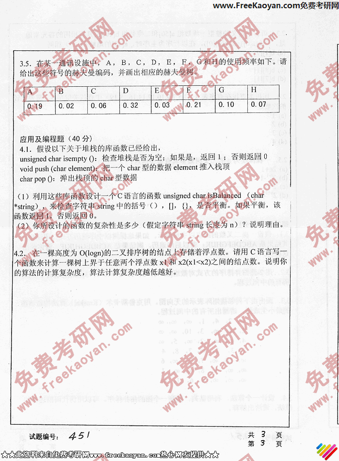 华中科技大学2006年考研真题-数据结构与算法分析(3)