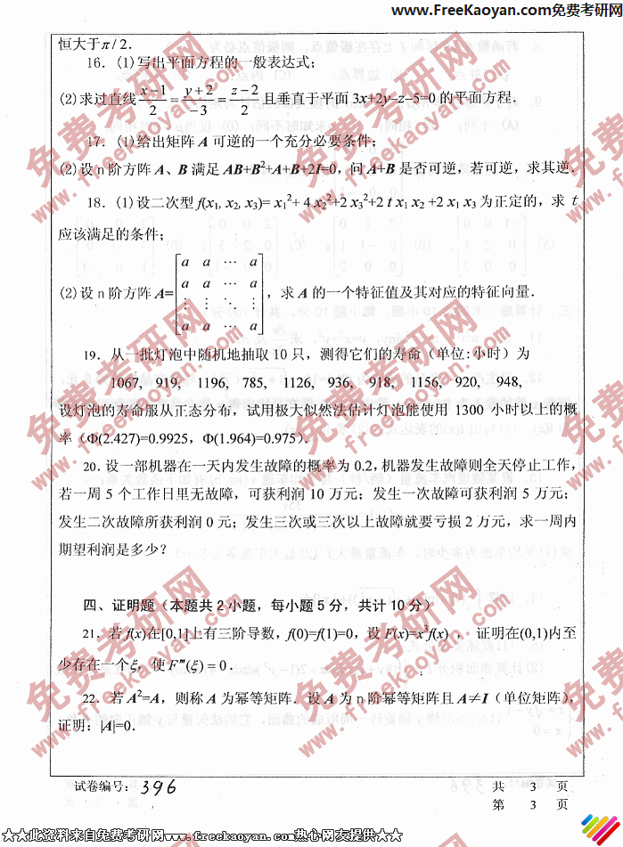 华中科技大学2006年考研真题-数学(理工科)(3)