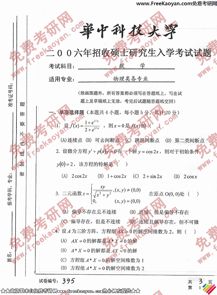 专业课考研经验 本站小编 FreeKaoyan 2018-01-22华中科技大学2006年考研真题-软件基础