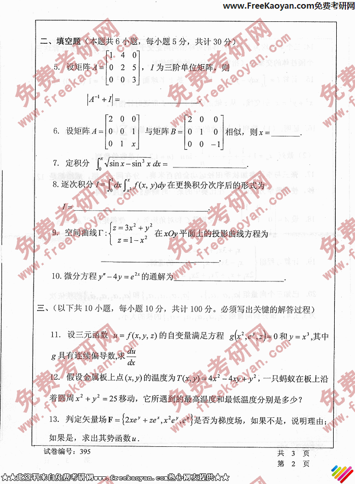 华中科技大学2006年考研真题-数学(物理类)(2)