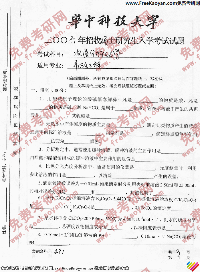 相关话题/考研真题 华中科技大学 分析化学 水质